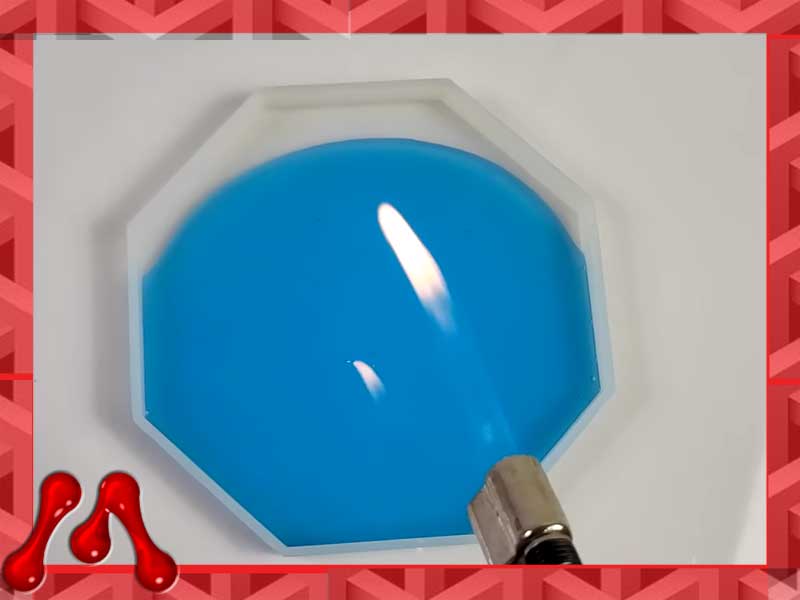 بعد از ریختن رزین، استفاده از یک مشعل یا سشوار صنعتی با حرارت کم میتواند حبابهای سطحی را از بین ببرد.